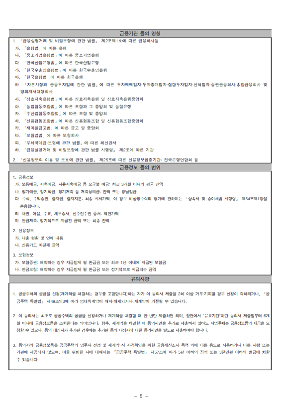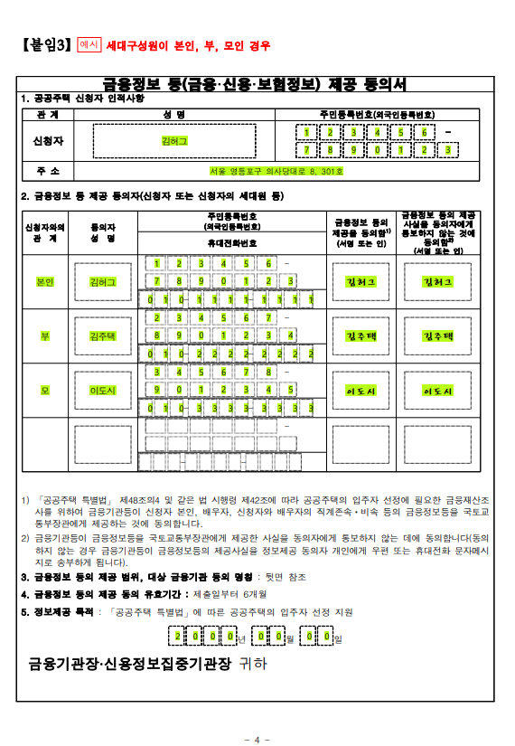 - 금융정보 동의서(세대원 전원 자필 서명)