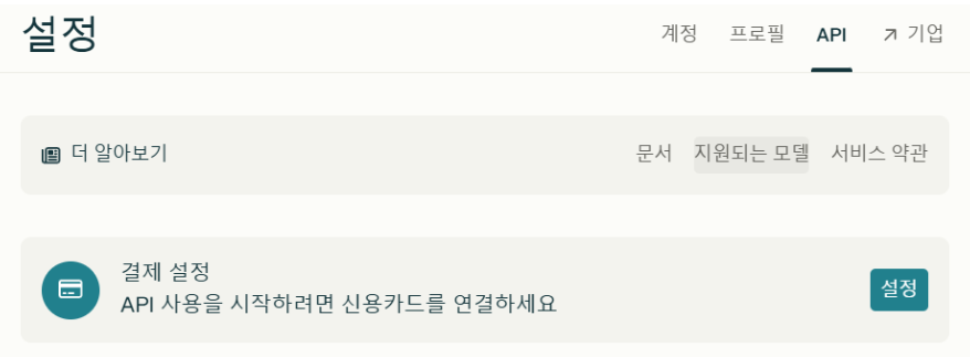 3. 설정 화면에서 상단 메뉴 중 API 메뉴를 누릅니다.
