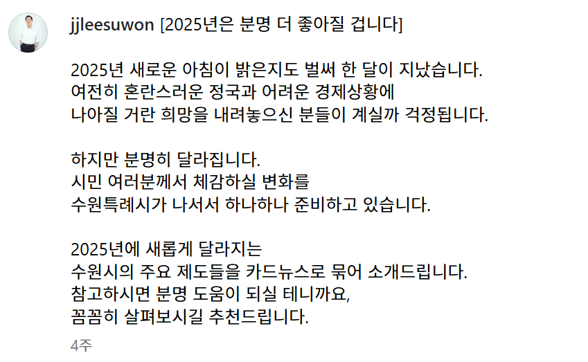 이재준 수원시 시장이 페이스북과 인스타그램에 수원시의 달라지는 주요제도에 관한 카드뉴스를 올렸네요.