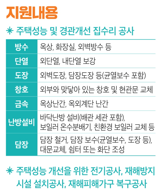 저층 주거지 집수리 지원구역을 일반주거지역 및 준주거지역으로 확대합니다.